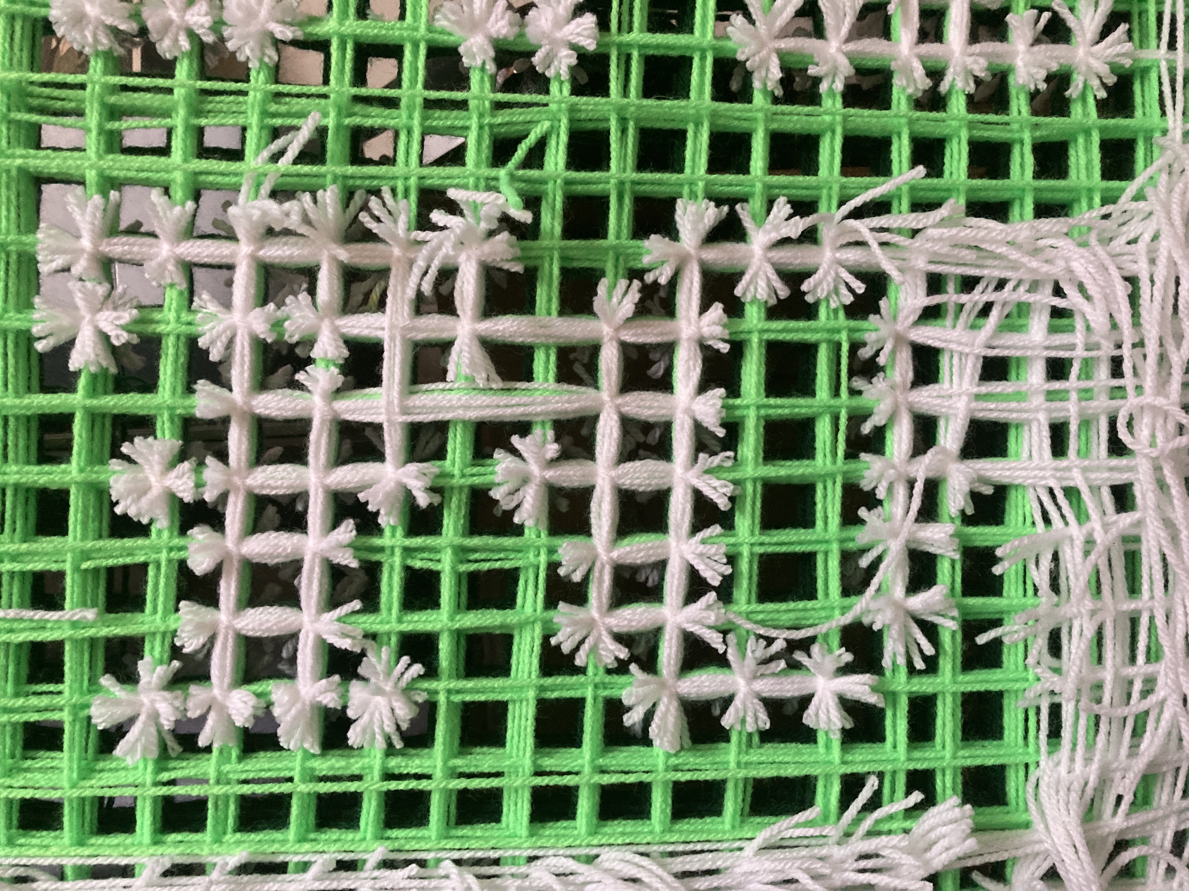 A handwoven rug exploring the duality between medium and message.